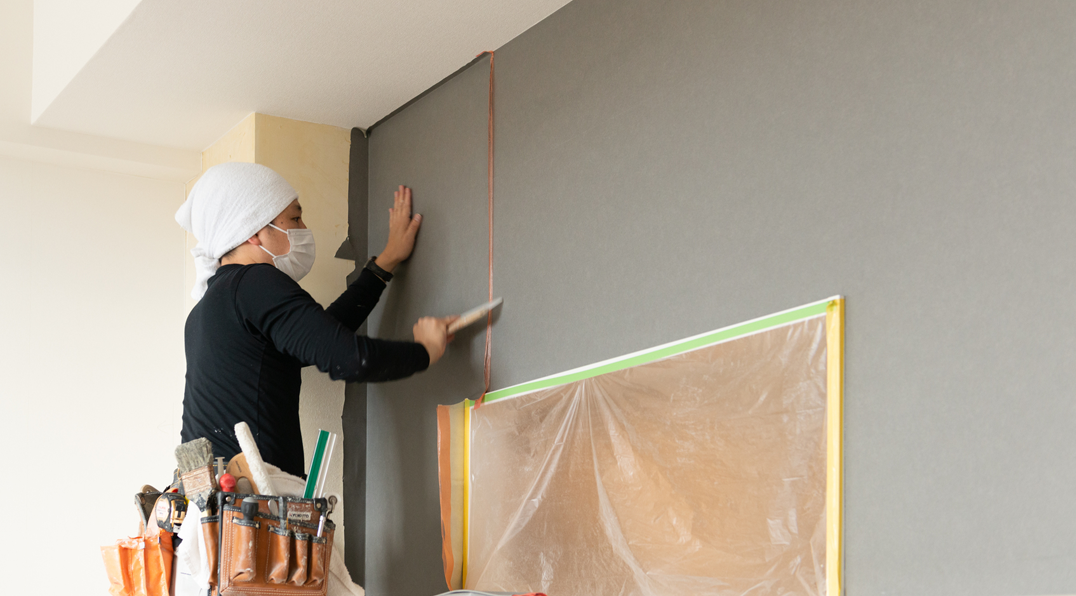既存のクロス剥がしから、下地調整、新規クロスの設置までを行います。